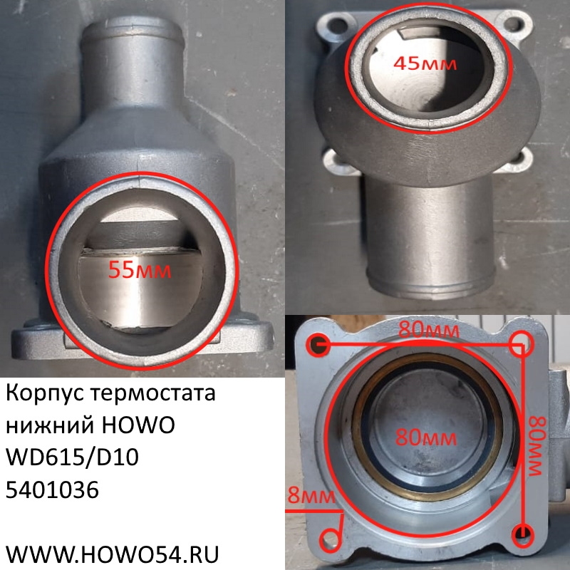 Корпус термостата нижний HOWO WD615/D10 VG1500061203 01036